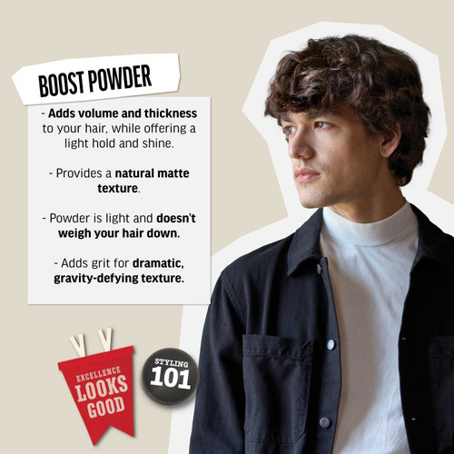 Anti-gravity volume is made easy with American Crew Boost Powder 10g. This hair styling product in a convenient powder form delivers a matte finish with extra gritty texture. A powder which will defy gravity and add grit and texture.