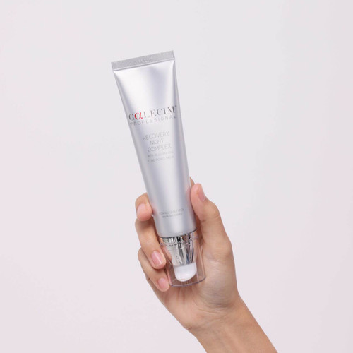 Calecim Recovery Night Complex 30g contains hyaluronic acid and sodium hyaluronate for deep hydration. Worn overnight to hydrate, brighten, repair and diminish signs of aging and wash off in the morning to reveal a flawless, calm complexion. Suitable for all skin types, mature skin and post-procedure recovery.