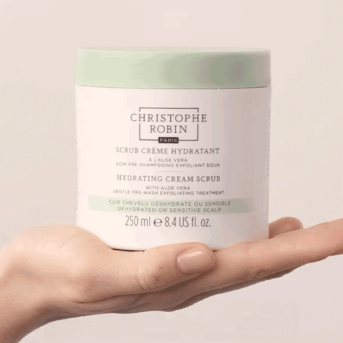 Christophe Robin Hydrating Cream Scrub with Aloe Vera is a gentle pre-wash exfoliating treatment formulated to deeply care for dehydrated or very sensitive scalps.