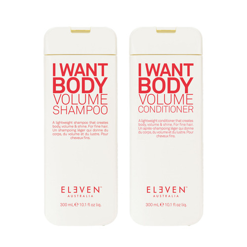 Transform your hair with the Eleven I Want Body Bundle, a carefully curated selection designed to elevate volume and vitality. This premium collection features the ELEVEN I Want Body Volume Shampoo and ELEVEN I Want Body Volume Conditioner, both enriched with natural extracts that strengthen and nourish fine hair. To complete your experience, indulge in the ELEVEN Miracle Hair Mask, a luxurious treatment that restores moisture and enhances shine. Together, these products work synergistically to create fuller, bouncier hair that radiates health.