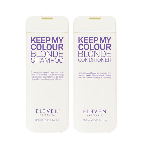 Transform your blonde hair with the Eleven Keep My Colour Bundle, a curated selection designed to enhance and maintain your radiant hues. This premium collection features the ELEVEN Keep My Colour Blonde Shampoo and ELEVEN Keep My Colour Blonde Conditioner, both enriched with ext. violet 2 to combat brassiness while nourishing your locks. As a special gift, enjoy the ELEVEN Miracle Hair Mask, a luxurious treatment that restores moisture and strength. Together, these products work synergistically to keep your blonde vibrant and healthy.