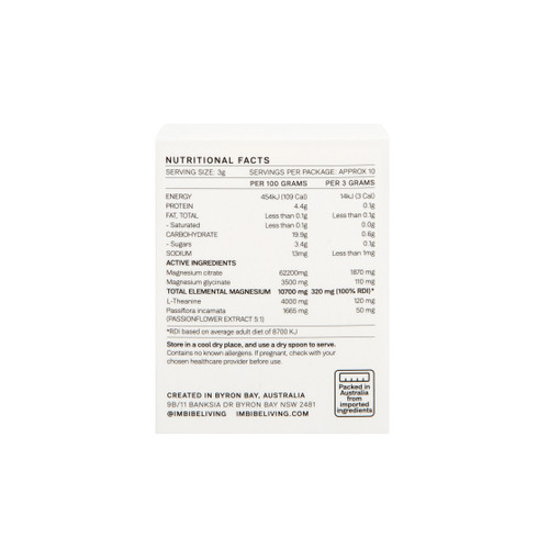 Elemental Magnesium blend (Magnesium citrate, Magnesium glycinate), Natural flavour (Raspberry Lemonade), Beetroot extract, Citric Acid, L-Theanine, Natural sweetener (Monk fruit extract), Passionflower extract (5:1), Ashwagandha root extract (10:1)
