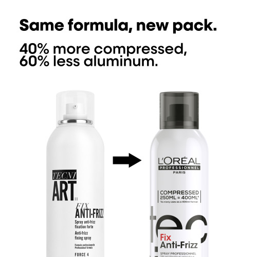 L'Oreal Pro Tecni ART Fix Anti-Frizz Spray is a strong hold styling spray in the TECNI.ART range. This anti-frizz fixing hairspray is an absolute must-have for any hair style or hair type. Worn by runway models, style will hold whilst remaining beautifully sleek looking.