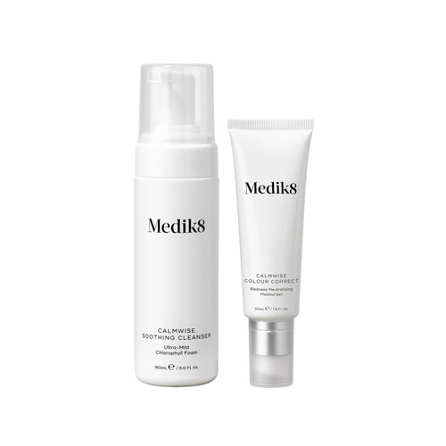 Experience the ultimate in skin comfort with the Medik8 Calmwise Sensitive Skin Bundle. This carefully curated collection features the Medik8 Calmwise Soothing Cleanser and Medik8 Calmwise Colour Correct, designed to soothe redness-prone skin while providing anti-ageing benefits. The soothing cleanser gently removes impurities, while the colour correct cream neutralises redness and enhances your natural glow. Together, they create a harmonious routine that calms, protects, and revitalises your complexion.