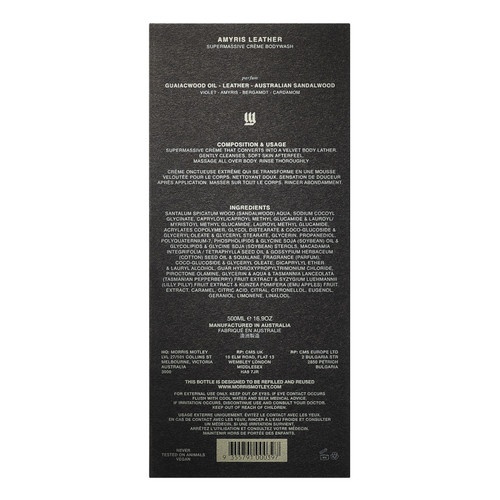Morris Motley Supermassive Crème Bodywash transforms from a rich, velvety crème that bursts into a dense, luxurious foam. This is bodywash, amplified. Packed with nourishing oils and skin-softening emollients, Supermassive invites you to slow down and savour the ritual. It's an immersive, full-sensory cleanse designed for those who want more from their daily routine.