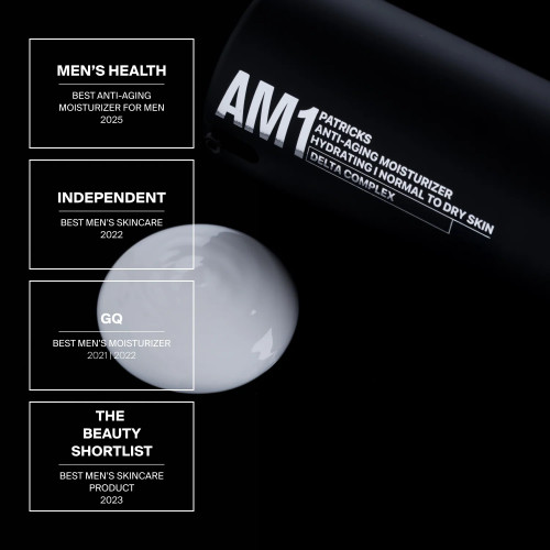 Patricks AM1 Anti-aging Moisturizer 8ml is a hyper-concentrated, Anti-Aging Moisturizer that hydrates for 24 hours. Advanced actives create a powerful combination, with Hyaluronic Acid minimising signs of aging, Creatine boosting collagen levels and Squalane promoting elasticity and brightening the complexion. Additional actives include Vitamin C + E, Revivyl, Lipid22, SK-Influx V, Omega 3 + 6 + 9, and Tego Cosmo C100.