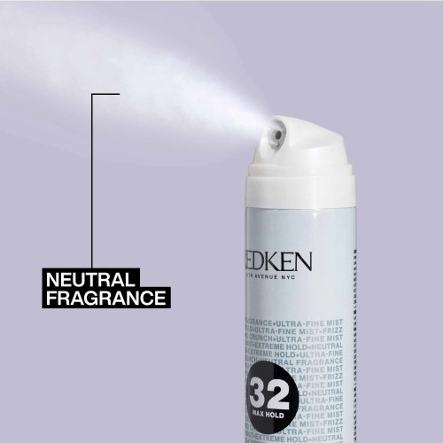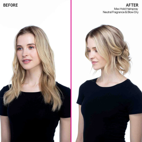 - Hold Redken Max Hold Pure Hairspray 20 - 30 cm away and mist on dry hair.