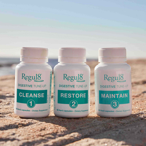 The Regul8® Digestive Tune-Up is a herbal-based three-step process that cleanses, soothes, and repairs the gastrointestinal system – removing unwanted organisms – soothing irritation, aiding sustainable gut health – rebalancing the good bacterial cultures and providing them with the appropriate environment to flourish. Restore and nurture the micro-flora in the digestive system with our unique micro-encapsulated probiotics that protect and deliver 100% live cultures to the lower intestine.